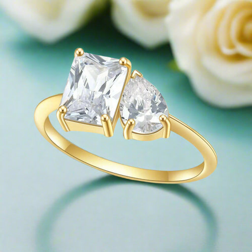 Refined 2.8 Ctw engagement ring featuring distinctive emerald and pear cut diamonds set in premium 14k gold. This masterfully crafted piece balances sophisticated elegance with captivating brilliance—a timeless investment in exceptional artistry.