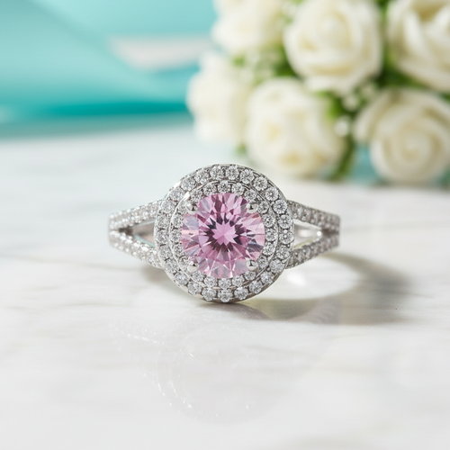 October's Tourmaline offers a spectrum of colors, but the exquisite pink variety is treasured most for its meaningful symbolism. Ranging from soft rose to intense magenta (Rubellite). This heartfelt connection is brilliantly captured by the magnificent Round 1.25 ct Double-Halo Tourmaline Birthstone Engagement Ring, which serves as a powerful reminder of inner strength.
