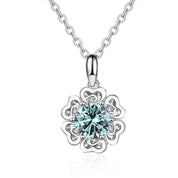This 1.0 Ct Diamond Flower Pendant Necklace features a sparkling round-cut moissanite set in a flower design. Made from 92.5% pure silver with an 18k white gold finish, it combines elegance with durability. A timeless piece that adds refined sparkle to any outfit.