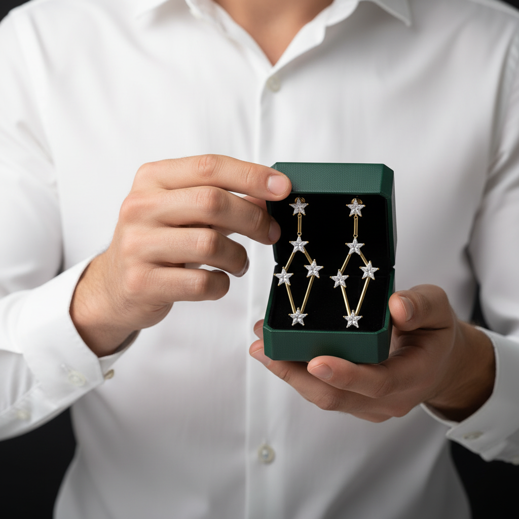 Make a stellar statement with our Golden Dreamlike Stars Drop Earrings by Evani Jewelry. These lightweight earrings are made with 925 sterling silver and feature round cut stones that come together to form a mesmerizing constellation of dreamlike stars. The created diamonds add a touch of high-quality sparkle to these affordable earrings, making them a standout piece in any jewelry collection.