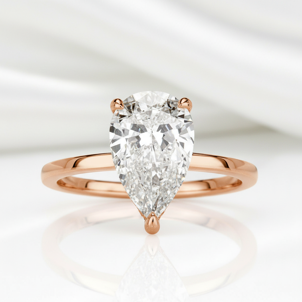 2.30 ct Pear Shaped Diamond Option 14K Rose Gold Engagement Ring