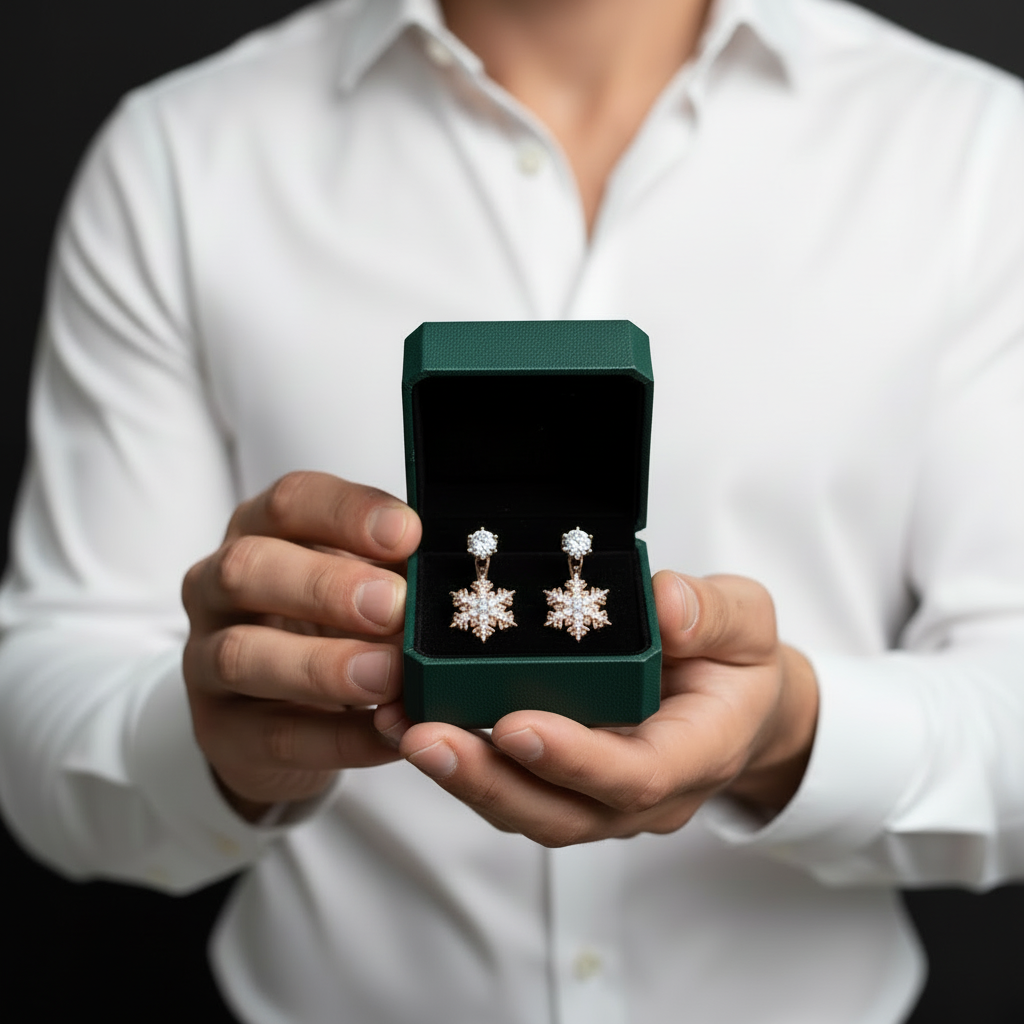 Rose Gold Snowflake Diamond Option Earrings