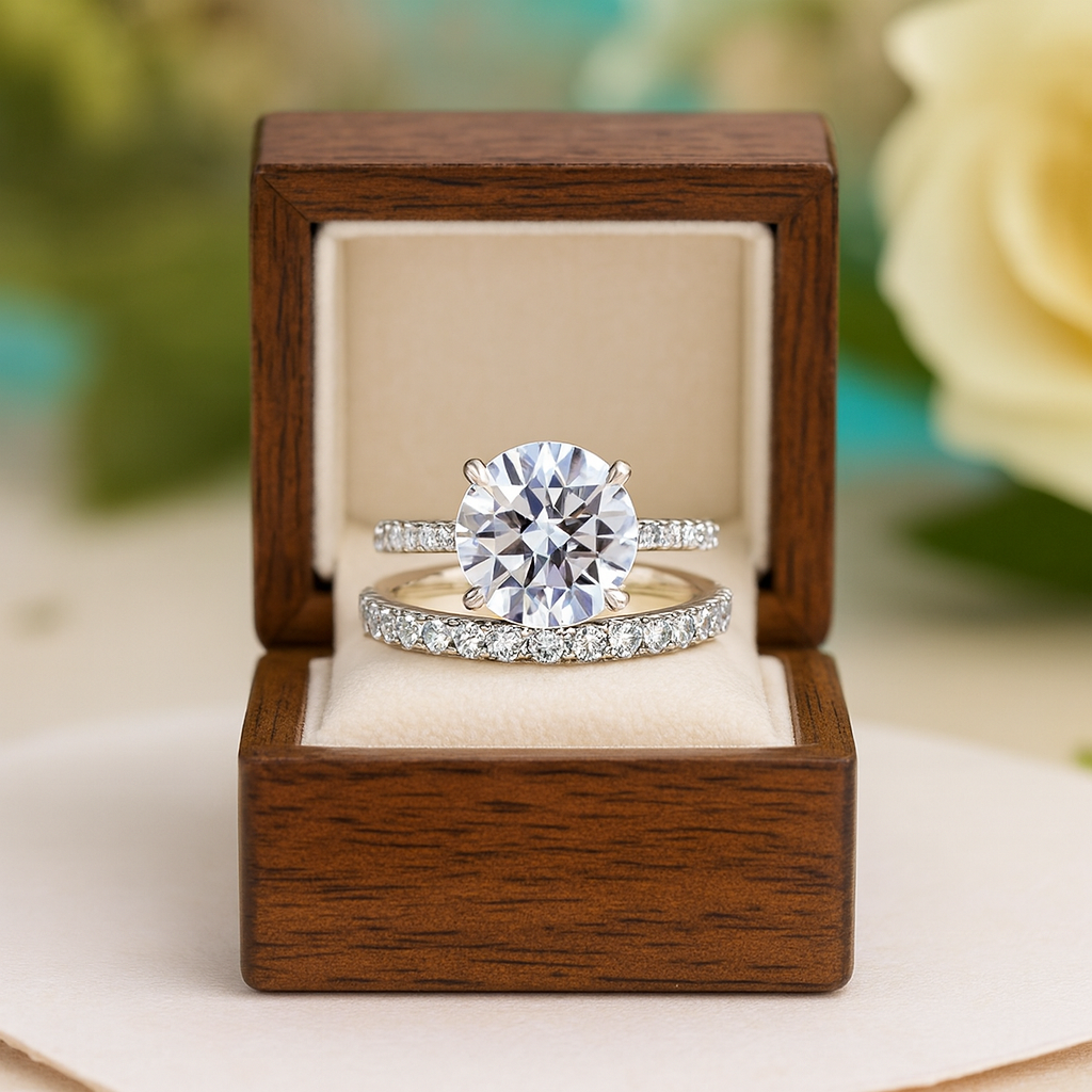 Round Cut 4.0ct Diamond Birthstone Bridal Set